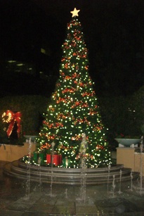 スタジオから見える夕陽と語学学校の前にあるツリーです。